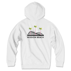 Stay cool and rep your favorite beach in style with this Mission Beach hoodie featuring the Giant Dipper rollercoaster.